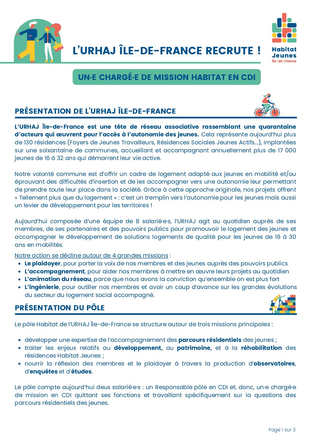 Merci d’envoyer vos candidatures (CV et lettre de motivation) avant le 30 octobre 2025 à l’attention de Tommy Veyrat, Directeur, à l’adresse : recrutement@urhaj-idf.fr.