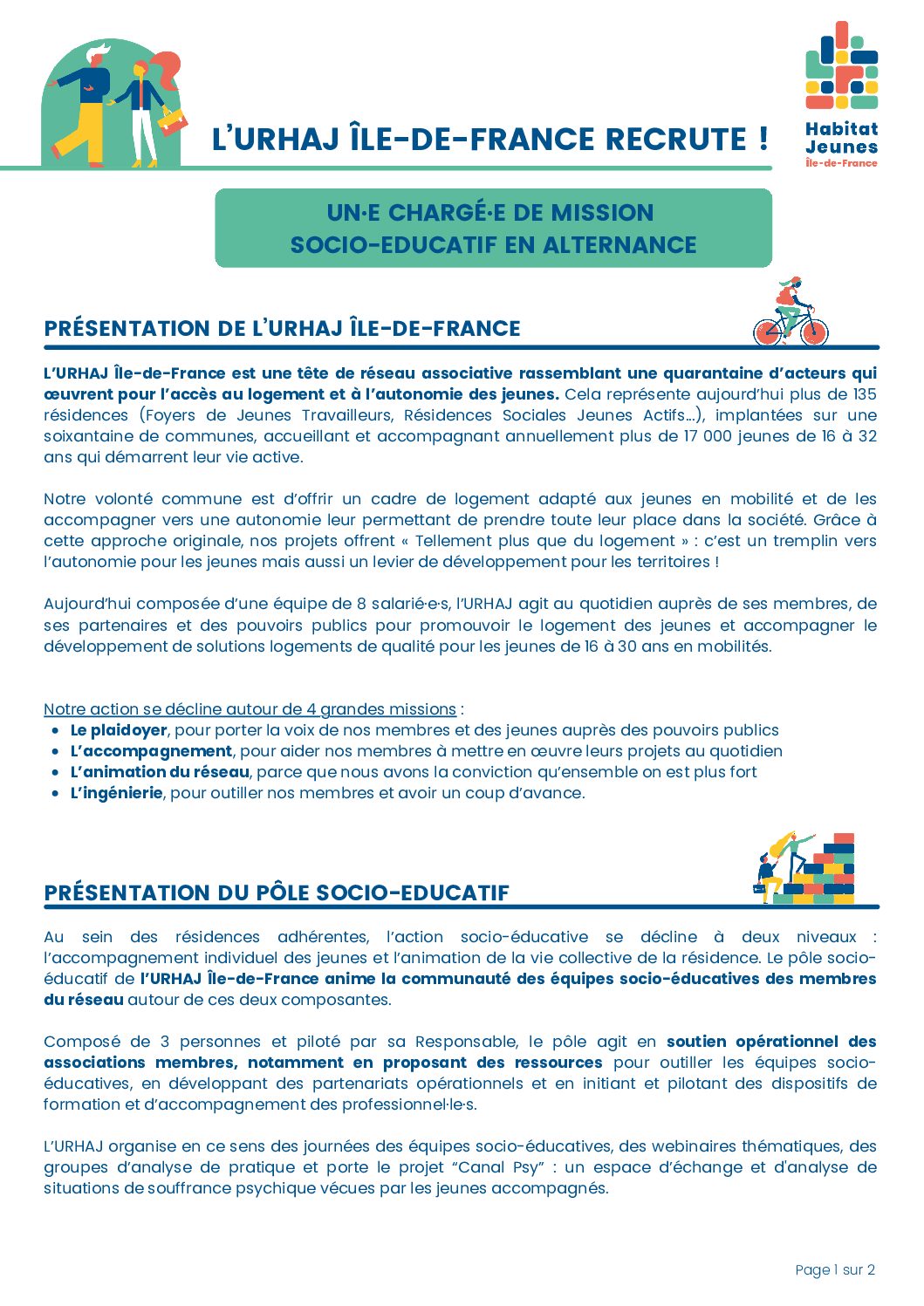 Merci d’envoyer vos candidatures (CV et lettre de motivation) avant le 17 mai 2025 à l’attention de Tommy Veyrat, Directeur de l’association, à l’adresse : recrutement@urhaj-idf.fr.